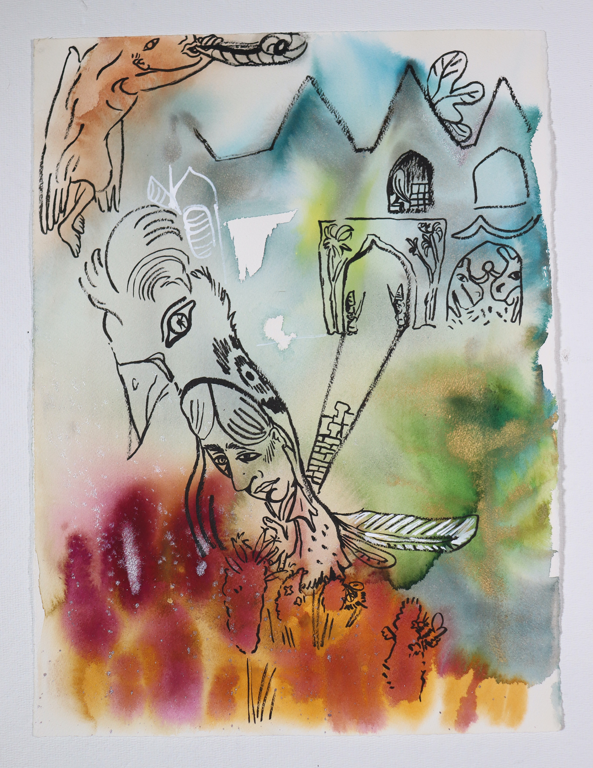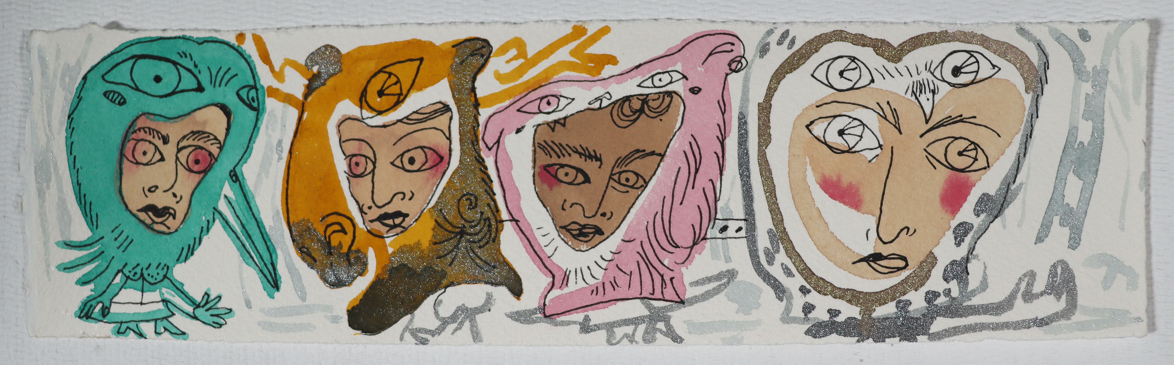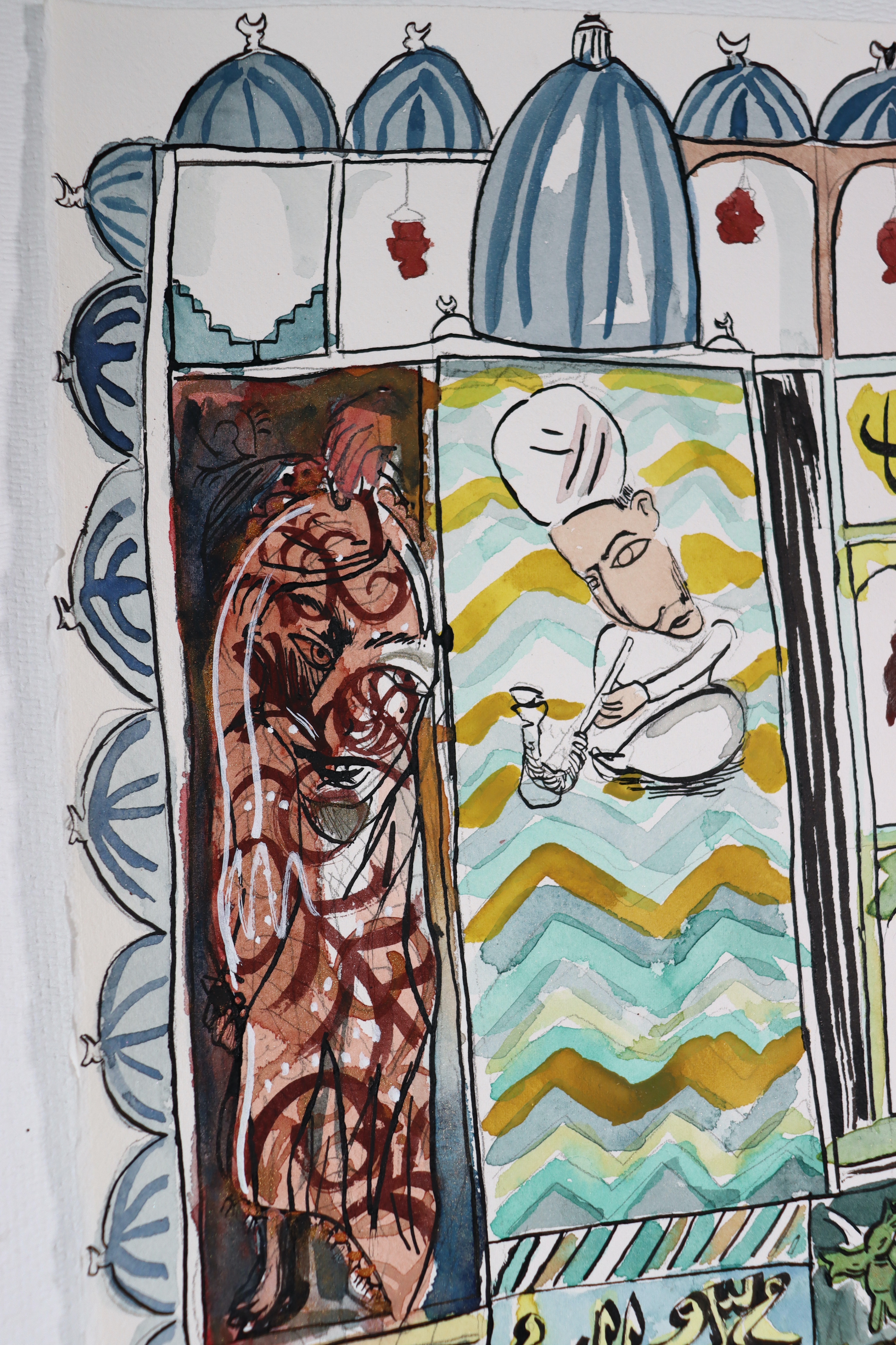 "Dünya'lar" Other Worlds, Watercolor on Arches, 15x30, 2025.