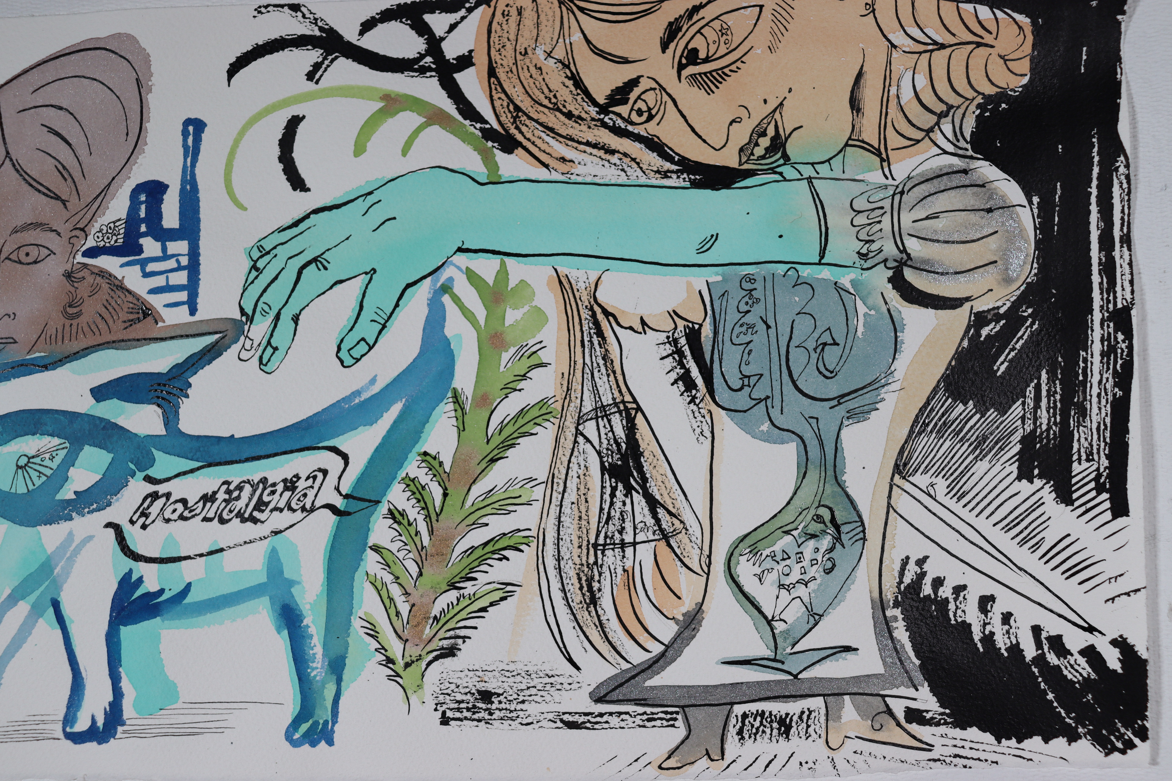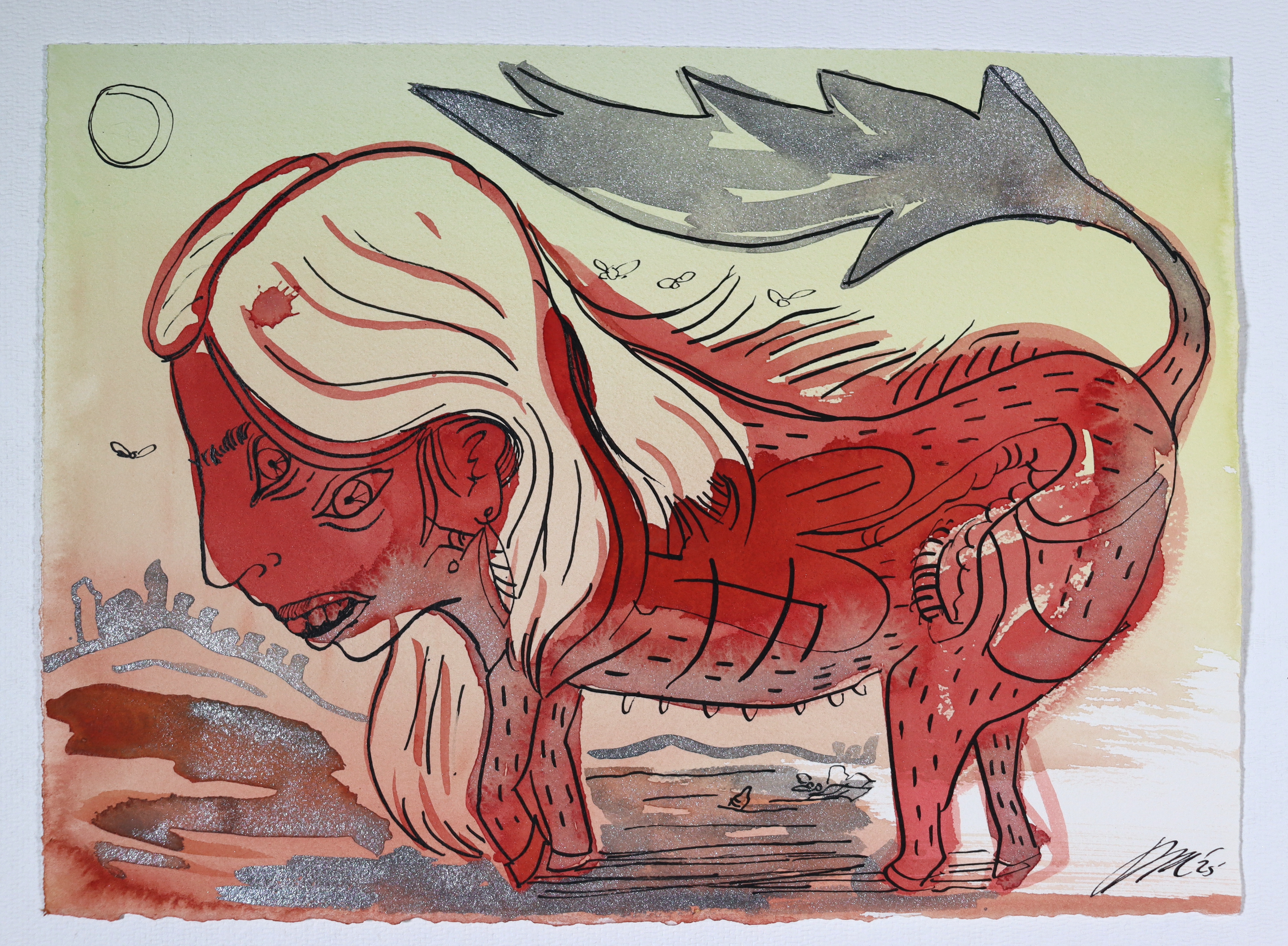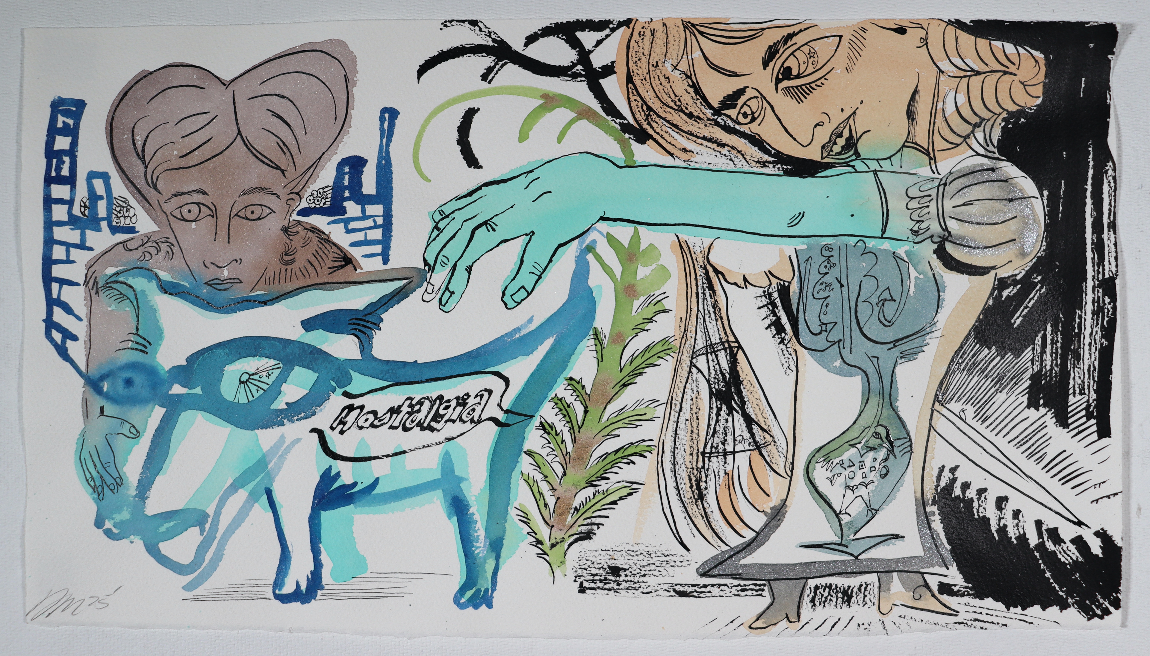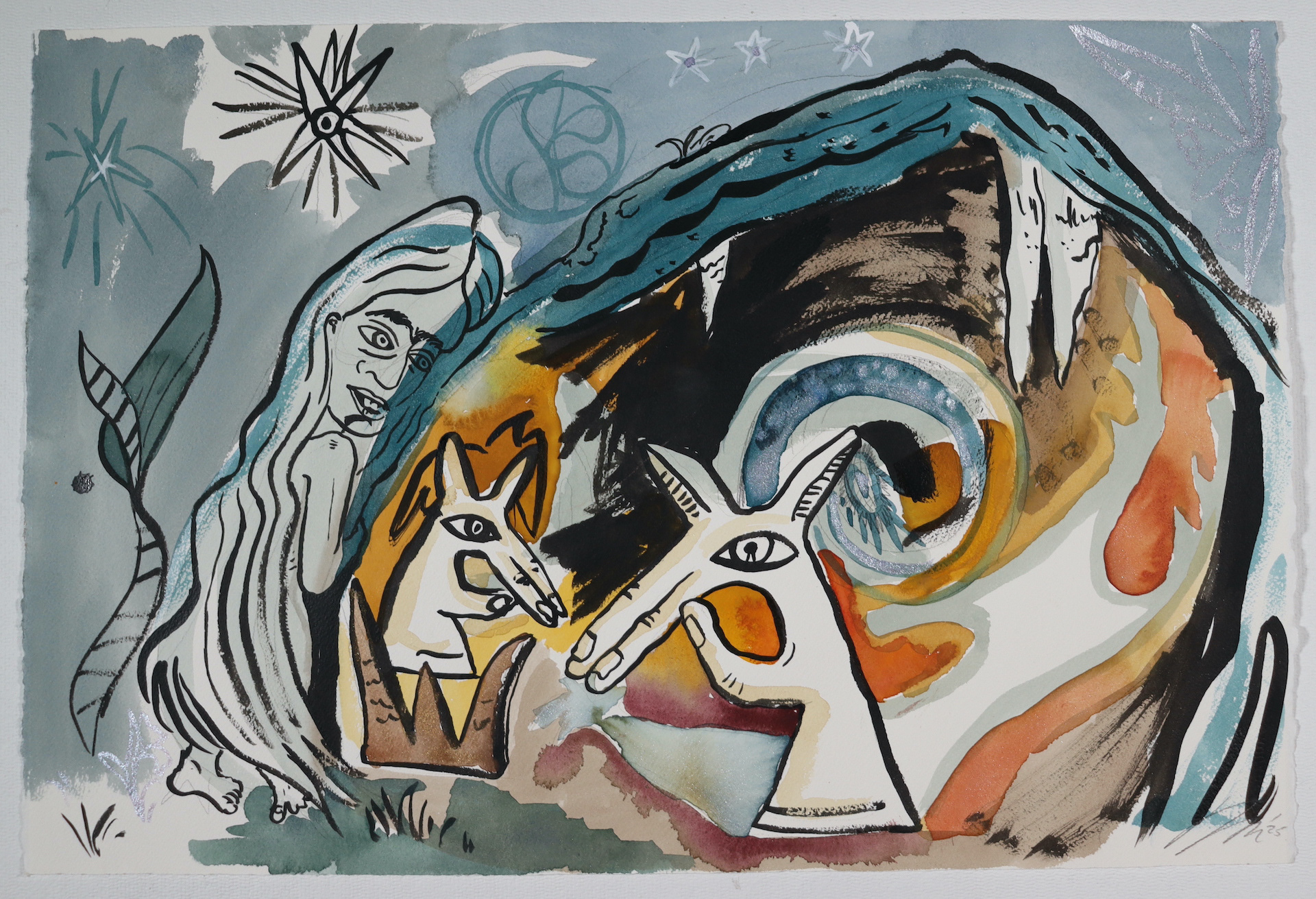 "Dünya'lar" Other Worlds, Watercolor on Arches, 15x30, 2025.