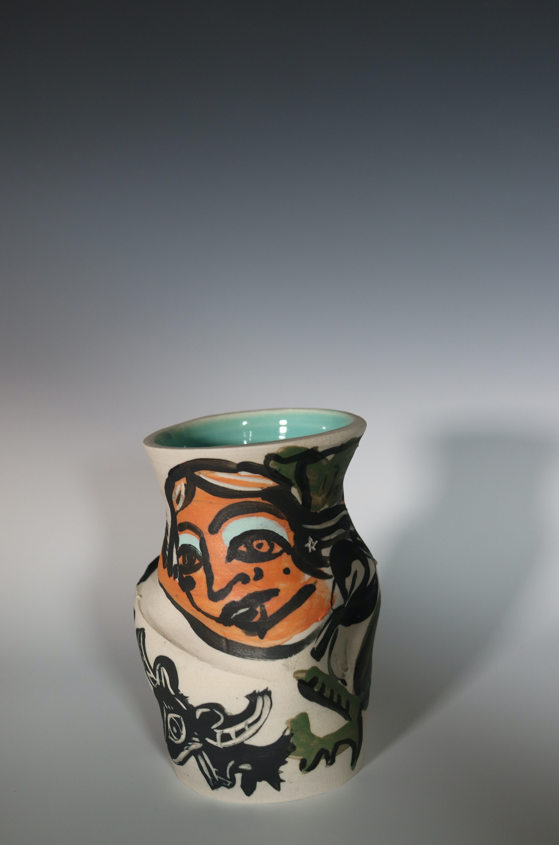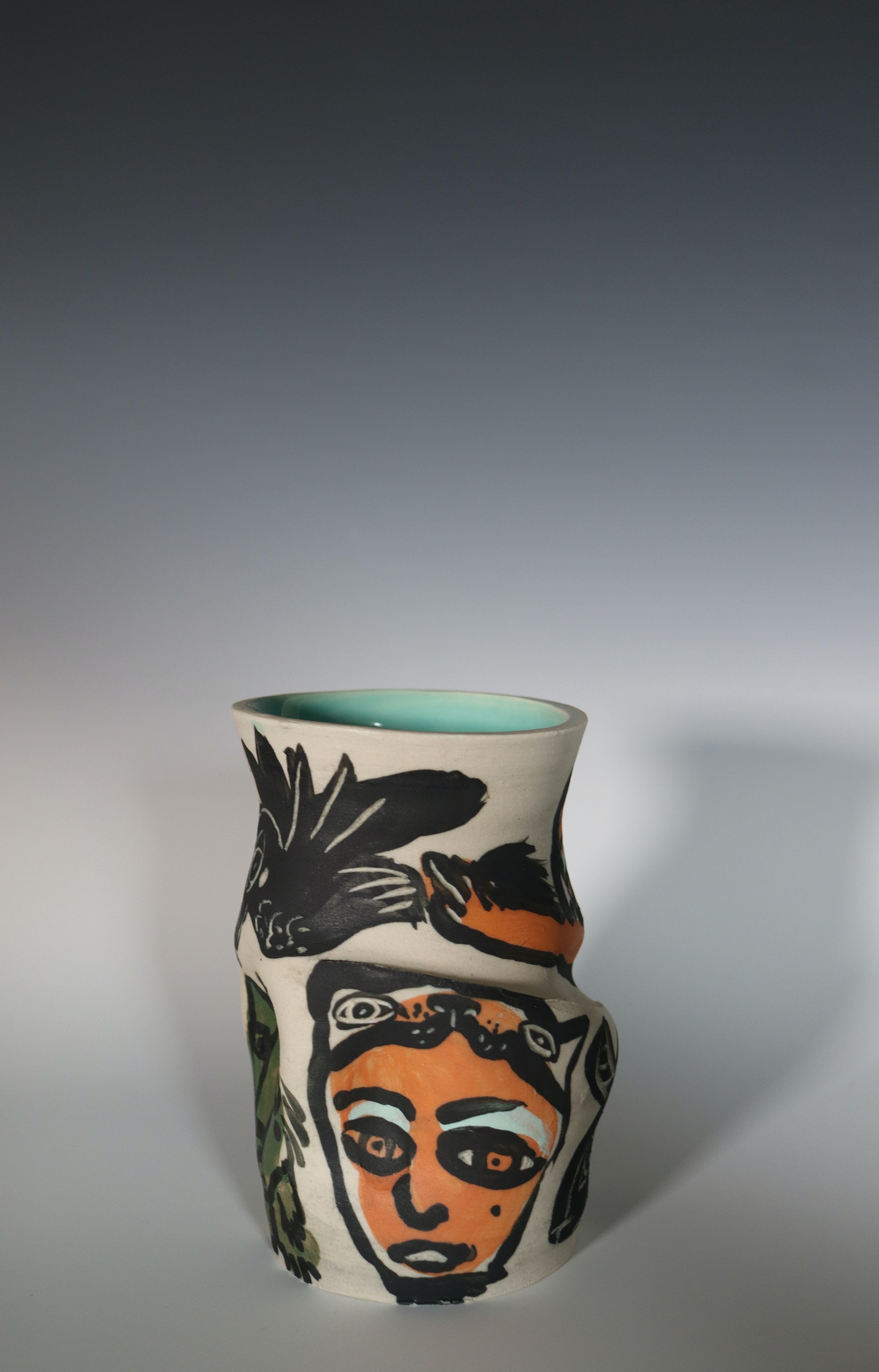 Old Breath, Underglaze Painting and Carving on Mid-Range Clay, 6x12, 2025